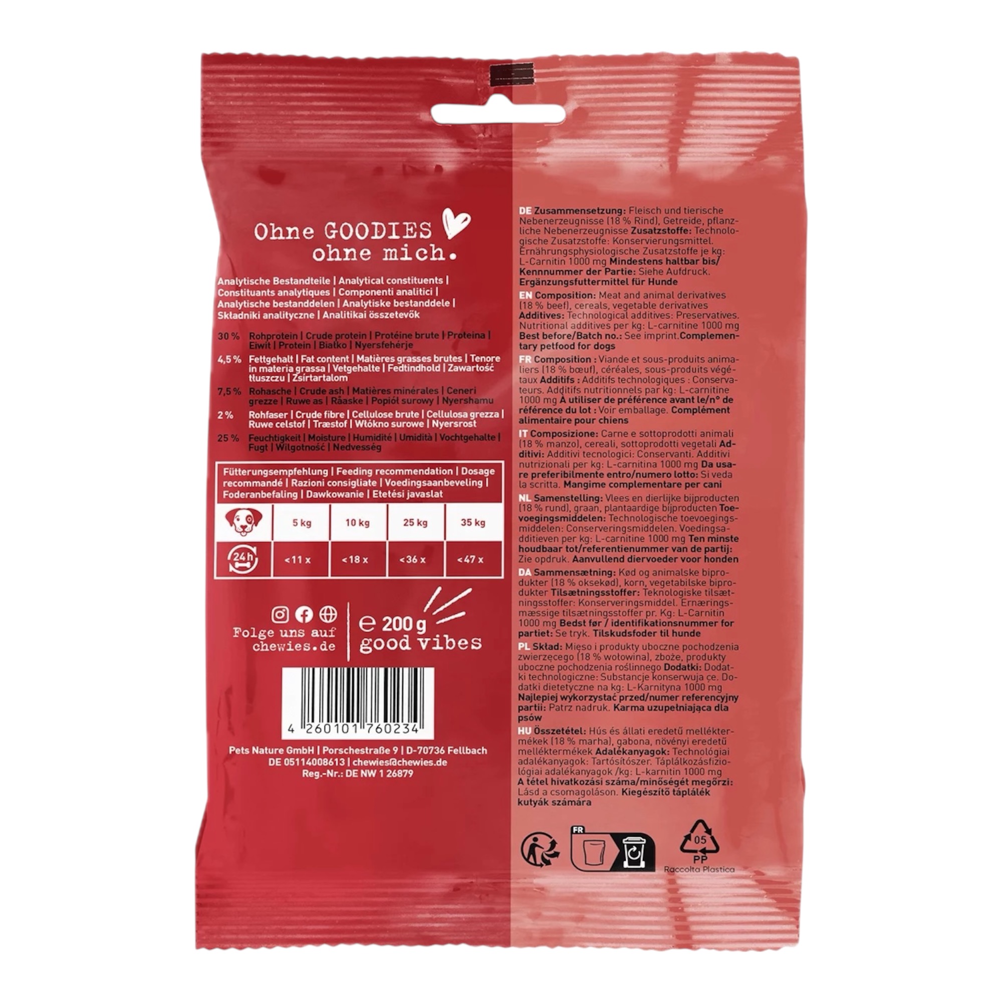 Chewies produziert alle Lieblingssorten ohne Geschmacksverstärker und Zuckerzusätze sorgfältig in Deutschland. Und das gentechnik- und tierversuchsfrei. Darauf achten wir ganz genau, weil Umwelt- und Tierschutzaspekte für alle Verantwortung bedeutet.