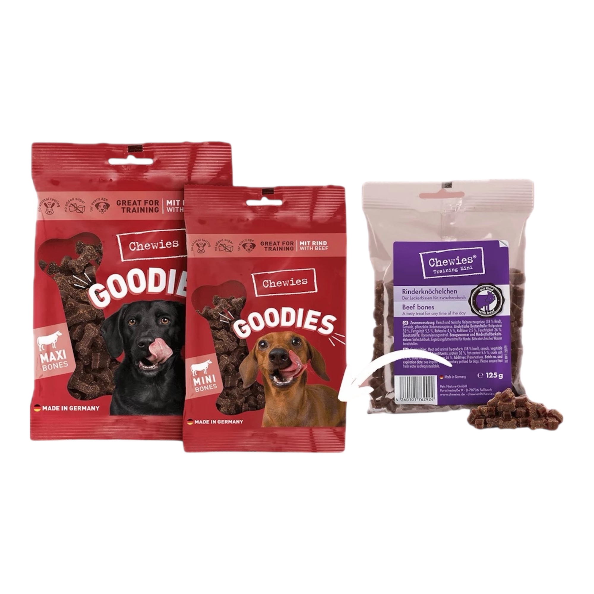 Die beliebten Trainings Leckerlis in der klassischen Knochenform eignen sich ideal für den Einsatz während des Trainings. Sie sind klein und verschwinden mit einem Happs. Deine Fellnase unterbricht die Arbeit nicht für das Leckerli, sondern bleibt durchgehend motiviert bei der Sache. Die meisten Hunde brennen für gemeinsamen Spiel- und Lernspaß, egal ob klein oder groß.