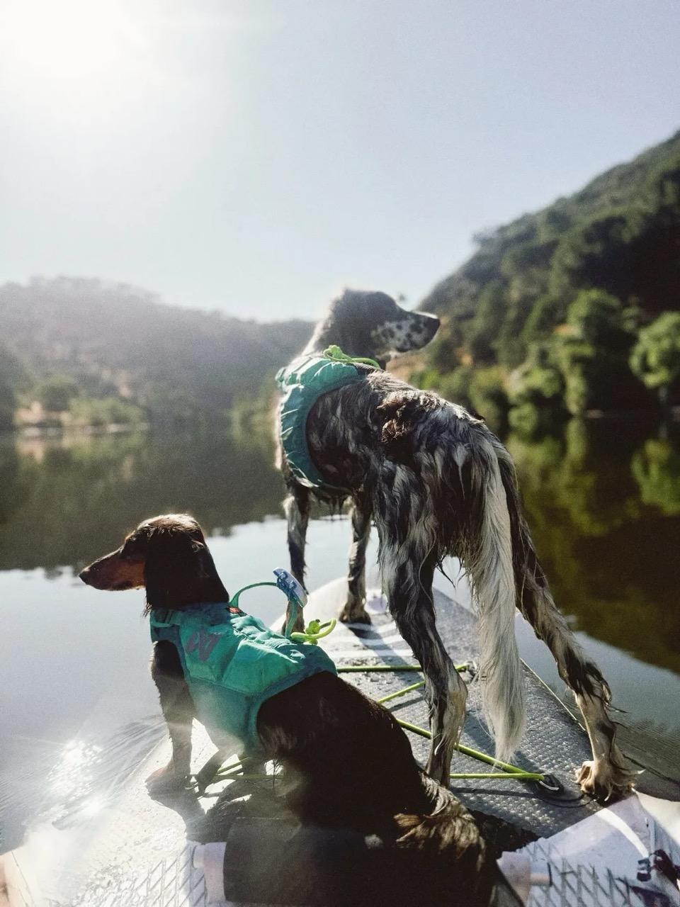 Schwimmwesten für Hunde sind oft sperrig und schwer zu transportieren, vor allem an Land. Ebenso hatten wir Schwierigkeiten, eine Schwimmweste zu finden, die unseren Hunden sowohl Auftrieb als auch Stabilität im Wasser bietet.